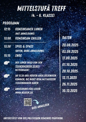 Am 29.10.25 findet der nächste Mittelstufä Treff statt.